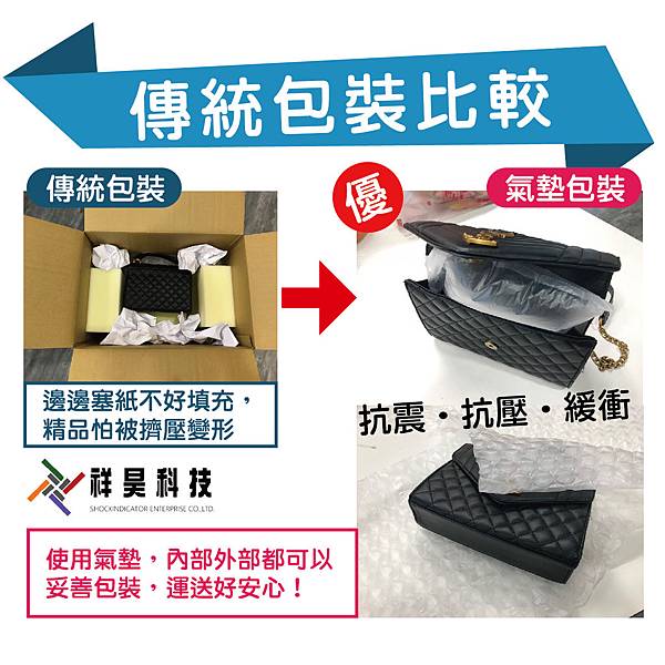 由於會可能因為不完整的氣柱袋而保護不夠完全…結果造成商品損壞哦!